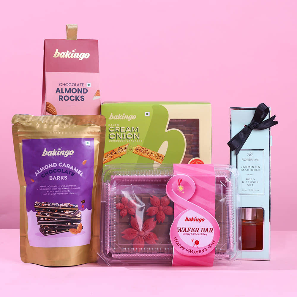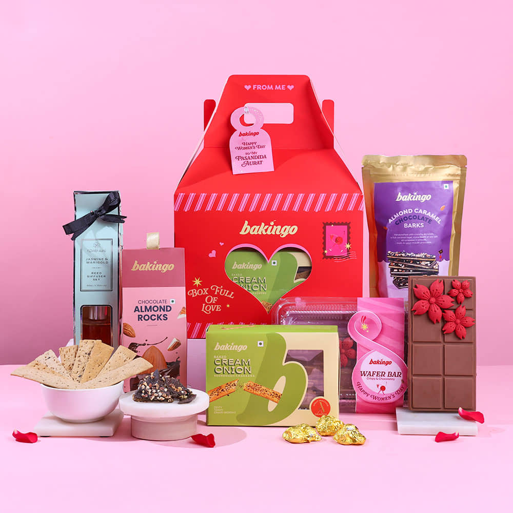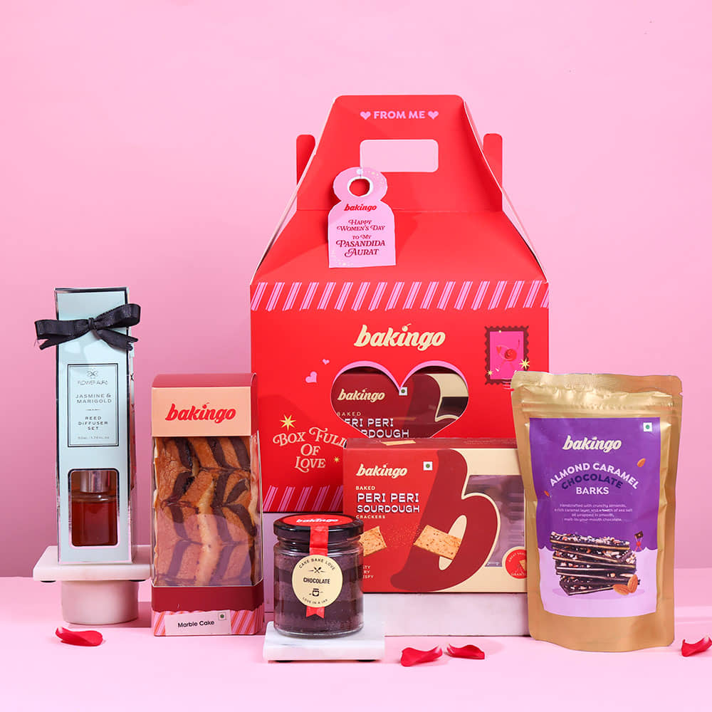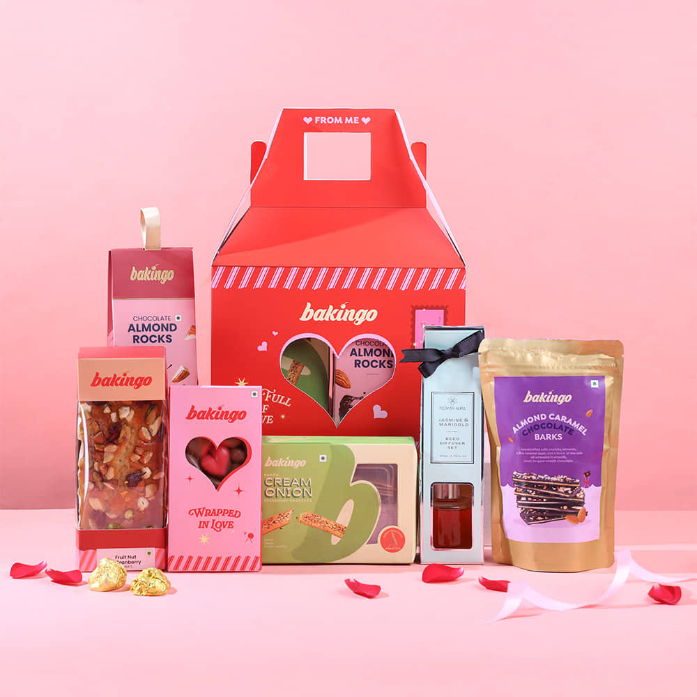 The joy of giving and receiving gifts is unique. Make your loved ones feel special with Bakingo’s exquisite bakery gift hampers. The much-loved online bakery is all set to give you a delicious sugar rush with their festive hampers online. No matter what the occasion, Bakingo has you covered. These bakery hamper is perfect for Diwali Gifts, Anniversary Gifts, Birthday Gifts, Housewarming Gifts, New Year Gifts, Christmas Gifts, Wedding Gifts, Raksha Bandhan Gifts, Mother's Day Gifts, Friendship Day Gifts, Women's Day Gifts, Corporate Gifts, Holi gifts etc. So why gift your loved one any regular hamper when you can give them a gift basket full of bakery hampers. All of the bakery products are handmade, using only the best ingredients and, of course, a little bit of love. Once, you have scrolled through our carefully curated collection of bakery gift hampers, gift baskets and gourmet food products that you can be confident to buy gifts for yourself too !!