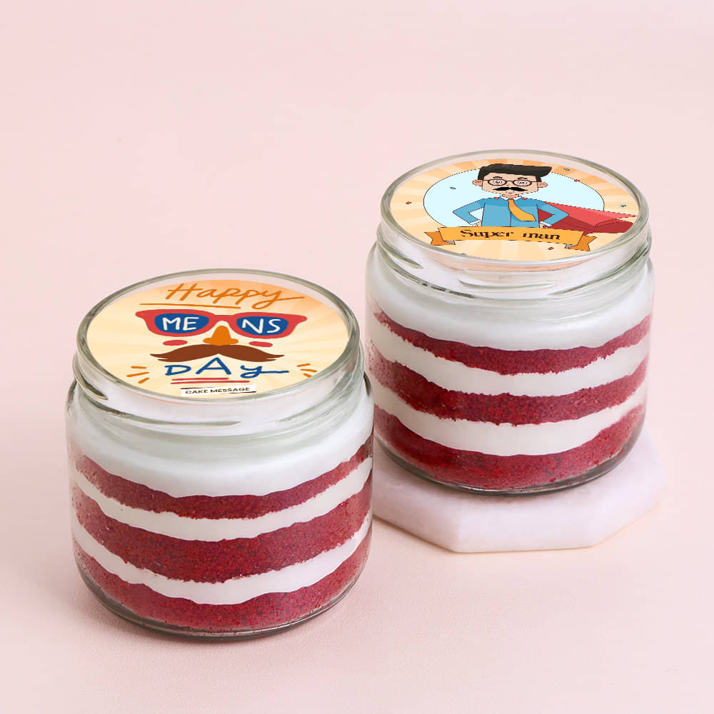 Happy Mens Day Red Velvet Jar Cake Duo