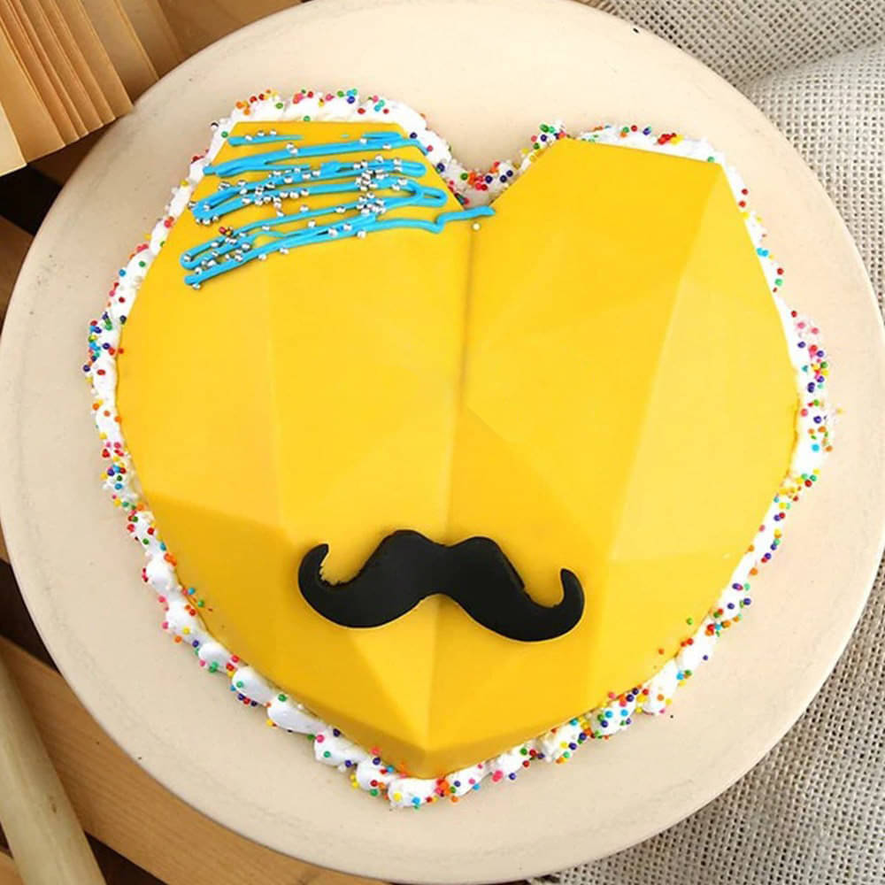 A heart shaped yellow pinata cake that is made of pure chocolate casing and comes topped with a mustache shaped fondant topping to celebrate the men i... Read more