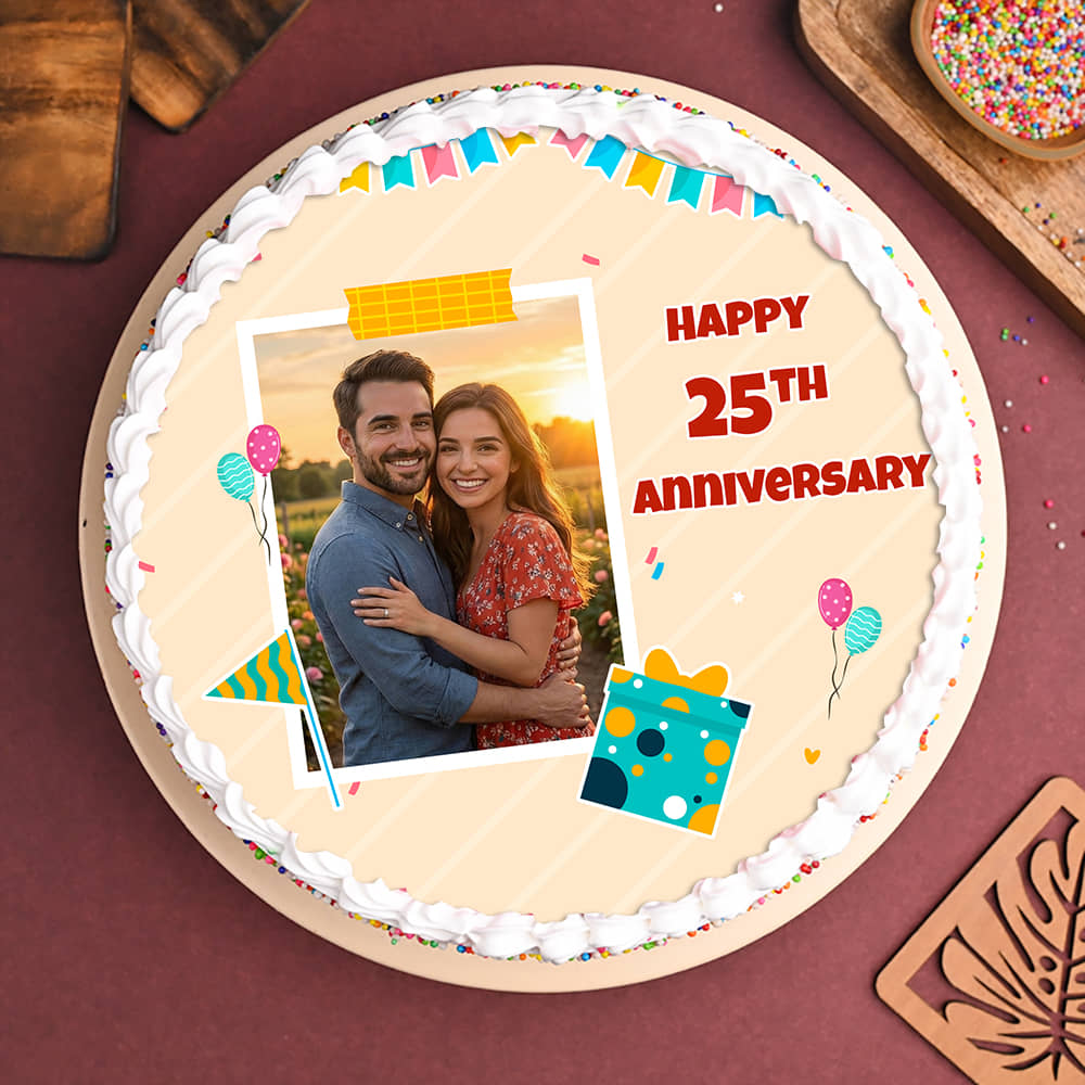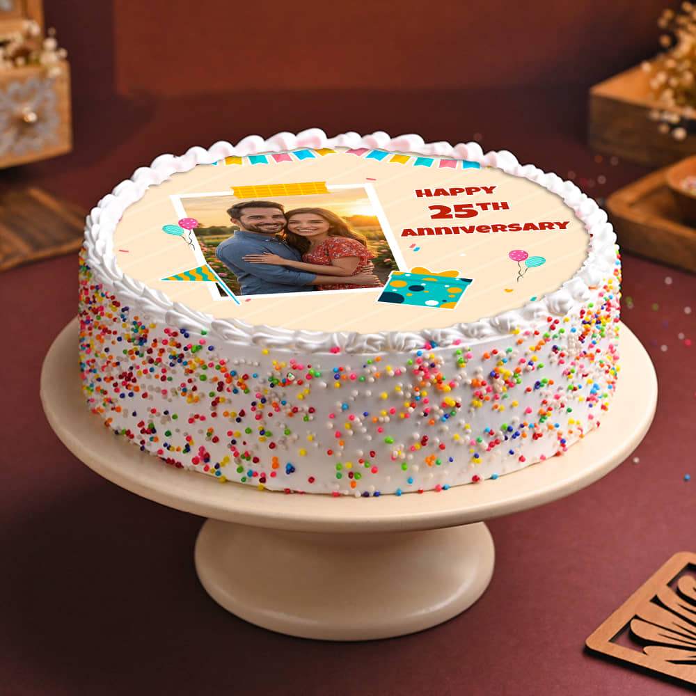 Twenty Fifth Anniversary Colourful Sprinkles Photo Cake