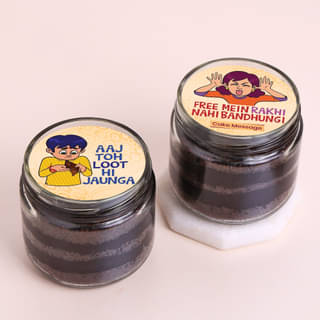 "Beautiful Rakhi with delicious jar chocolate cakes. Thank you."