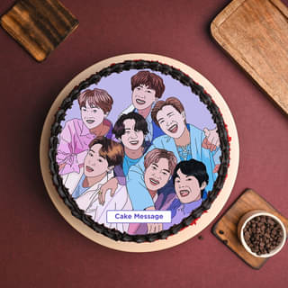 "Delivered without any damage.. beautiful BTS print, Tasty chocolate cake with Red velvet coating... Thank you Bakingo for making my Birthday cake unforgettable"