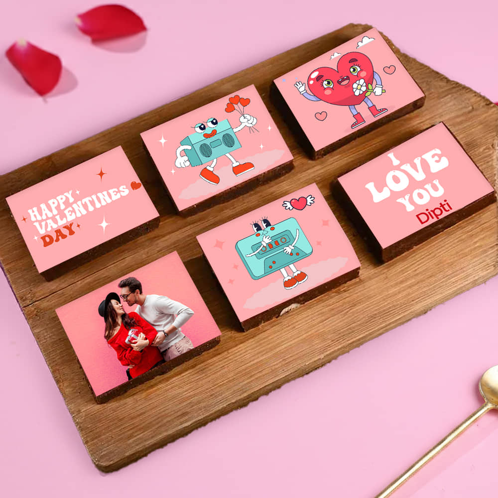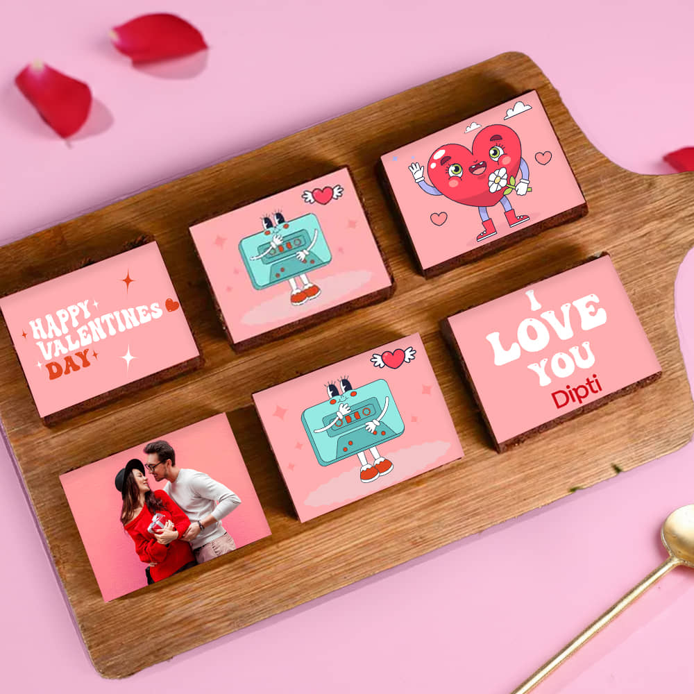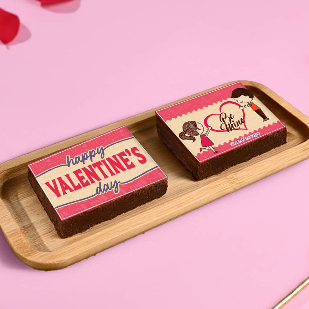 These petite wonders are a perfect blend of fluffy cake and creamy frosting, decorated with love-themed adornments. Starting at Rs. 649 (for a set of six), they are an ideal way to express your affection without saying a word. Our jar cakes are a must-try for those who enjoy a twist in their dessert. Layered with moist cake, luscious cream, and delightful toppings, these jar cakes are a treat for the palate and a feast for the eyes. Our jar cakes start at Rs. 379 (for a set of two), making them an excellent choice for a sweet surprise. Chocolate lovers are in for a treat with our brownie sets. Rich, fudgy, and utterly decadent, these brownies are a chocolatey delight that will melt your beloved's heart. And, of course, our classic Valentines Day cakes are the centrepiece of our collection. These cakes are a testament to love and craftsmanship and are available in various flavours and designs. Each cake is a work of art, promising flavour and an unforgettable experience. Visit Bakingo to buy and send Valentine's desserts for your sweetheart.